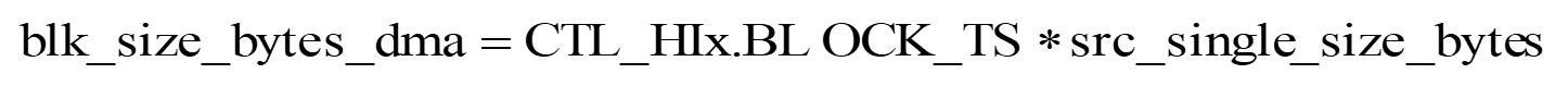 It is worth mentioning that when DMA is used as flow control, the total number of bytes (blk_size_bytes_dma) transmitted by DMA in a single transmission depends on the product of the source transmission bit width (src_single_size_bytes) and the block size (CTL_HIx.BLOCK_TS). The detailed calculation methods are as follows: