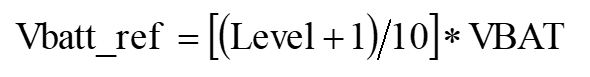 The following figure shows the settings of VBATT control level. The COMP_BATT_LVL_CTRL_2_0 level value ranges from 0 to 7, and the calculation formula of Vbatt_ref is shown below: