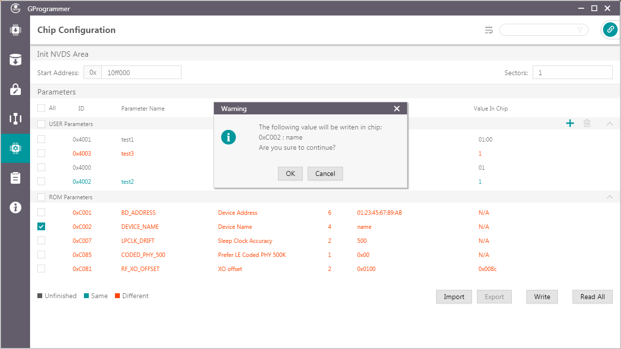 - 若参数状态为Unfinished,则不允许直接写入芯片。
