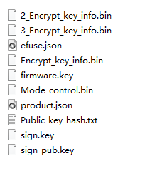 - Encrypt_key_info.bin、2_Encrypt_key_info.bin、3_Encrypt_key_info.bin:eFuse下载文件,包含产品及加密加签信息。此文件需下载至eFuse。