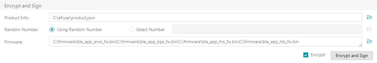 - Random Number:选择Using Random Number将使用软件自动生成的随机数进行加签,用户也可以点击Select Number选择自定义的数字bin文件进行加签。
