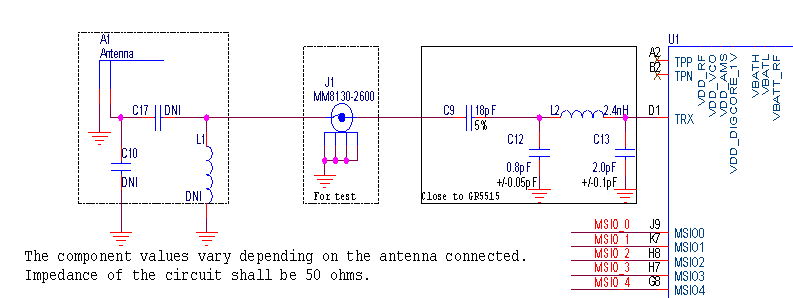 GR551x最小系统中射频模块的电路原理图如图 11: