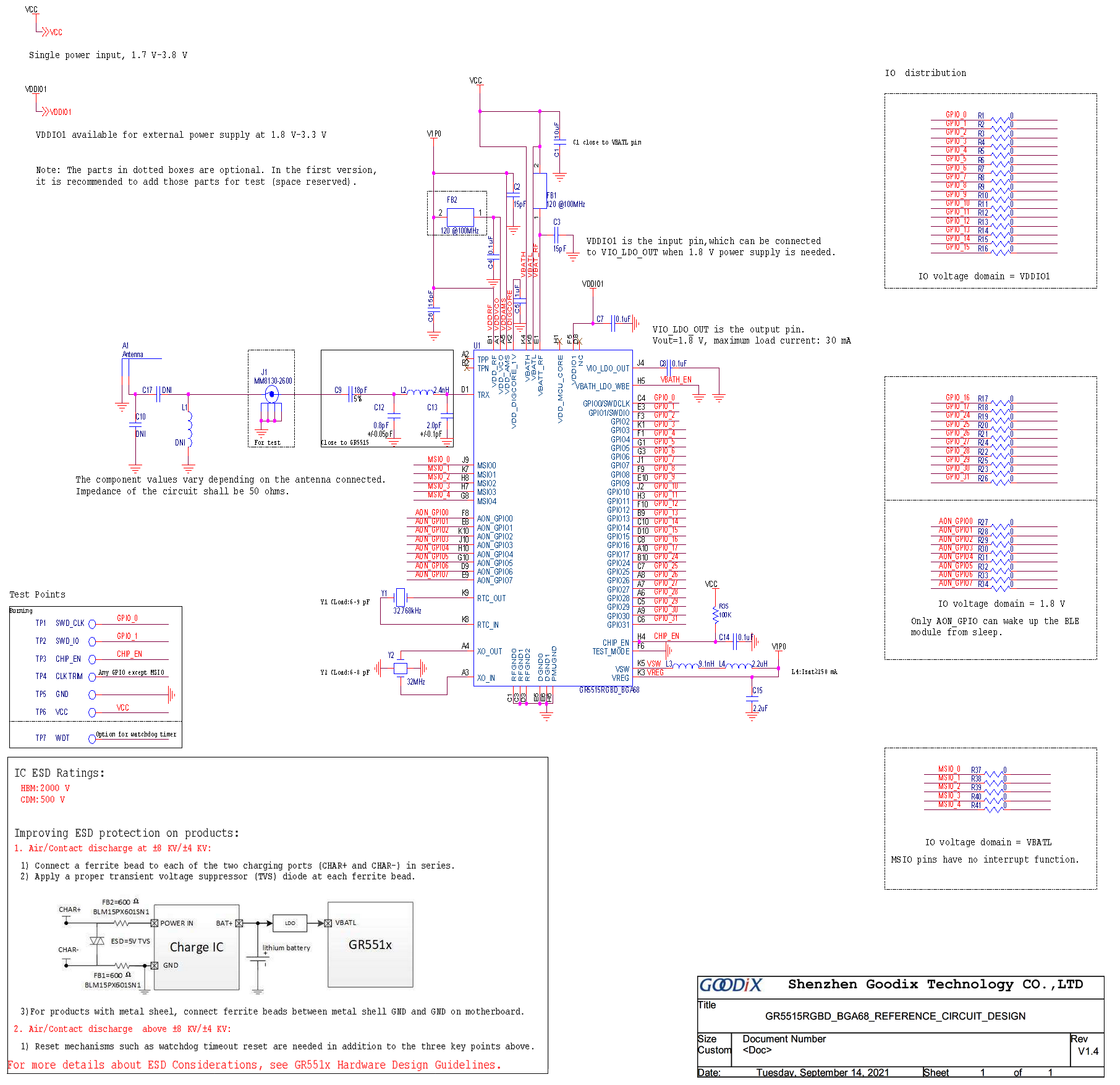 GR5515RGBD BGA68封装(NRND)的参考电路原理图如图 30所示: