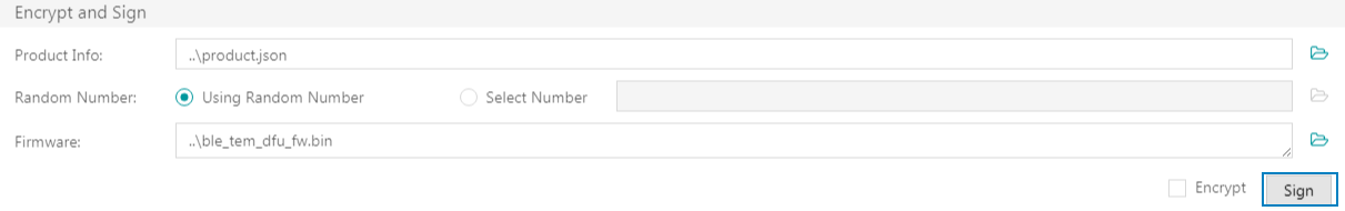 导入product.json文件和应用固件ble_tem_dfu.bin,再点击Sign按钮,如图 8: